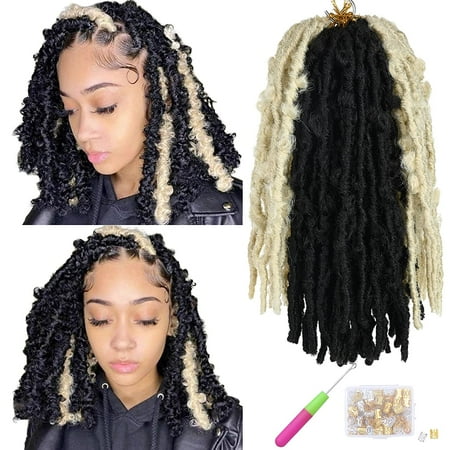 Butterfly Faux Locs Crochet Hair 7 Packs 12 Inch Short Bob Distressed Locs Ombre Faux Locs